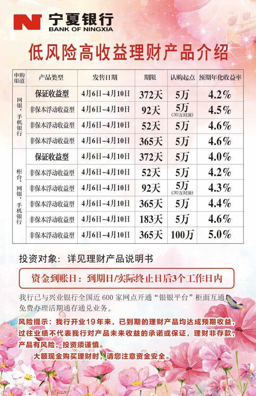理財(cái)產(chǎn)品4.6-4.10